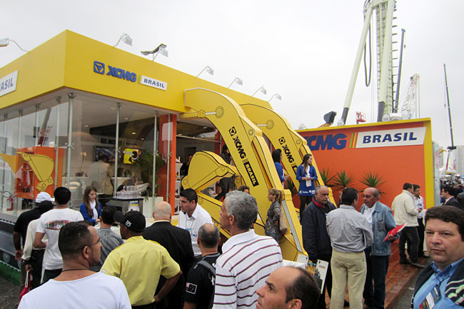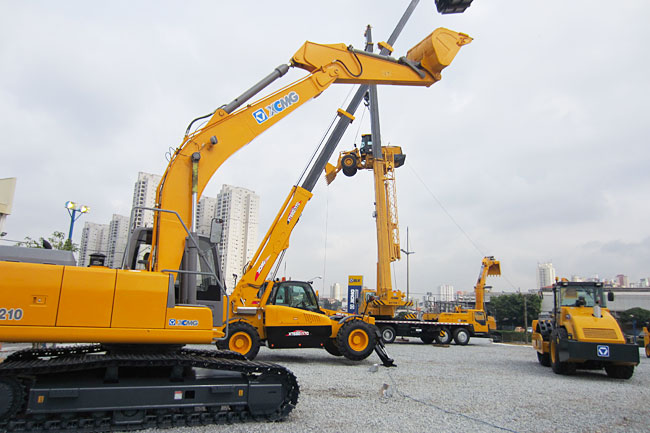 The M & T Expo starting from May 29th attracted numerous large machinery manufacturers and parts suppliers all over the world. XCMG placed great importance on this Expo, bringing 16 products specially-designed for Brazilian market, and arranging three exhibiting sites to present the core products under five categories. The largest exhibiting site is as big as 4000㎡. With innovative design and unique modeling, XCMG’s exhibiting sites became the focus of attention of lots of customers. The exhibiting site highlighted with a suspended ZL30H created the most impressive effect. The product testing area within the exhibiting site is crowded with customers. XCMG not only invited customers to get on the vehicle and operate the product by themselves, but also prepared simulated training equipment for customers to experience how to operate the equipment. The customers spoke highly of XCMG’s products.