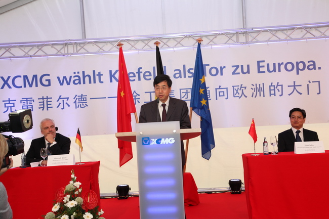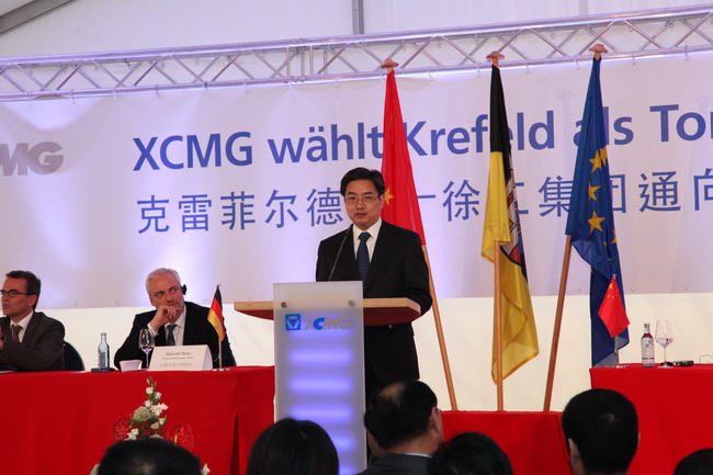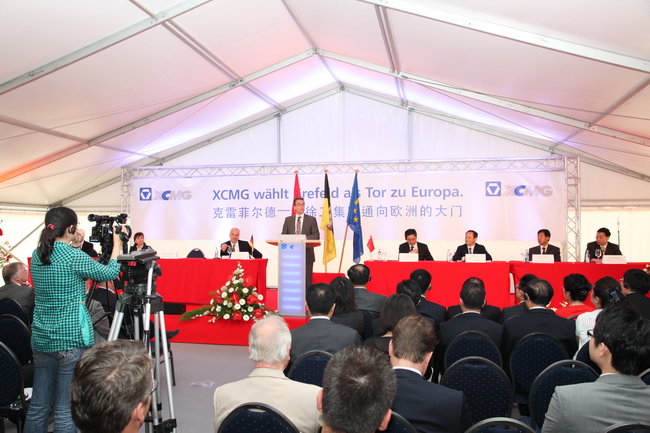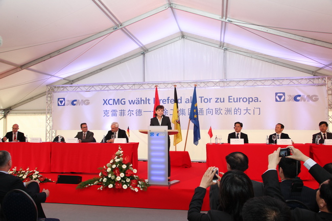 On the morning of 6th July German time, XCMG Europe held a grand foundation laying ceremony in Krefeld, Germany. Mr Zhu Min, acting Mayor of Xuzhou, Mr Gregor kathsteds, Mayor of Krefeld, Mr Garrelt Duin, Minister of Economy, Trade and Handicrafts in Nordrhein-Westfalen, Mr Wang Xiting, Deputy Consul-General of the Chinese Consulate General in Frankfurt, Mr Wang Min, President of XCMG, project members of XCMG Europe, some components providers and a large number of Chinese and foreign media got together to witness this milestone moment.