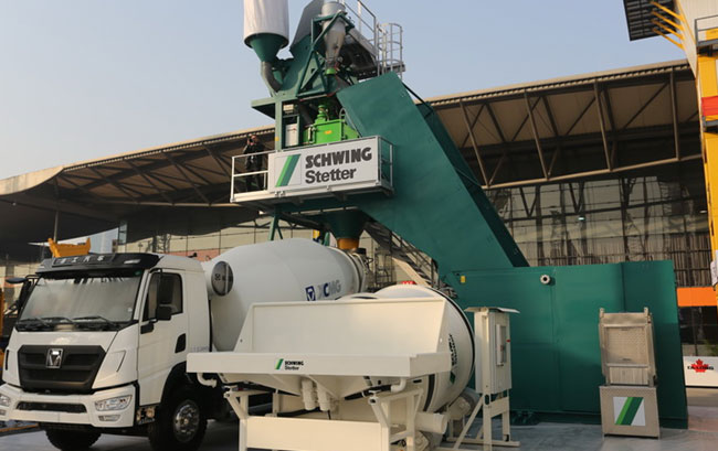 At the exhibition stand of Schwing, a deluge of products that represented the state-of-the-art technologies in the concrete machinery industry were displayed, including M2.5 mobile concrete mixing plant, 55-metre concrete pump truck, ultra high pressure vehicle mounted pump, industrial pump, concrete recycle equipment, ice-making plant, control system and group valve model, etc.