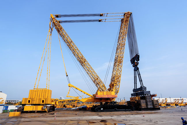 “What is 4500 tons equivalent to? Suppose that the weight of a loaded truck is 10 tons, hoisting 4500 tons means elevating 450 loaded trucks. ” said Sun Li, director of XCMG Construction Machinery Crawler Crane Research Institute. “The superb hoisting capability is attributed to the advanced structure and layout of the crane.”