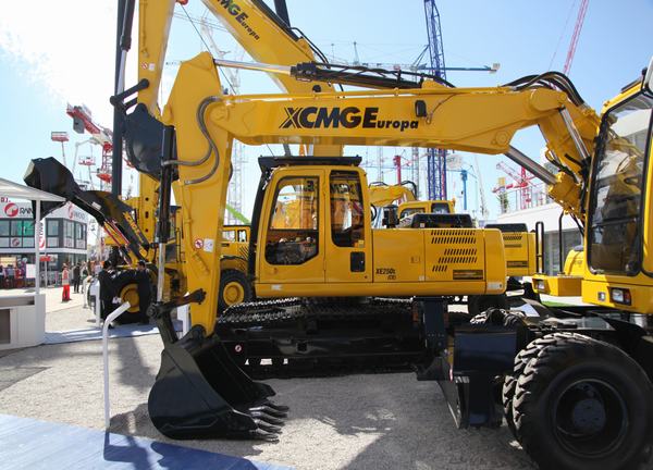 On Bauma Exhibition 2013, XCMG and Schwing, an established concrete machinery maker of Germany which has been just acquired by XCMG in 2012, set up an independent booth with four sides open in the outdoor exhibition area. XCMG this time exhibits 11 cutting-edge products representing the highest technology level which include hoisting machinery, earth moving machinery, drilling machinery and road machinery, which have all passed CE certification of the EU, among which are three newest products, namely, XE210W excavator, QAY55 all-terrain crane and XR220D rotary drilling rig. What’s worth mentioning is, this time the 11 cutting-edge products exhibited by XCMG all adopt newest painting that complies with the aesthetic habit of European users and noise and emission control standards, which arouse great response from the attendees.