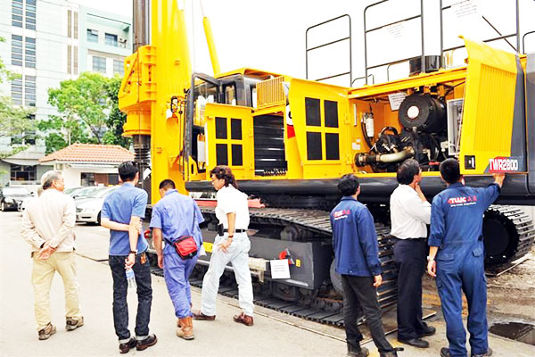 At the scene of the road show, XR280D rotary drill looks magnificent. With the super stability, the absolute superiority of greatest drill depth, high construction efficiency and splendid spatial mobility, it has won unanimous praise among the construction parties in all walks of life in Singapore. At the scene of the road show, the drill was sold and transferred to the construction site of the housing project to engage in the engineering construction. It laid the first drill yesterday, whose technical advantage and construction stability of drilling was well praised and fully displaying the wonderful performance and magnificence of XCMG rotary drills.