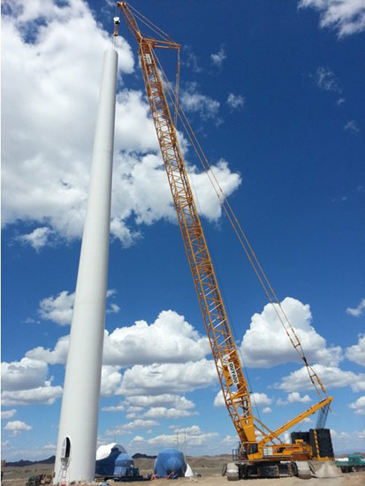 Recently, XCMG QUY400 crawler crane partook in construction of China Power Investment Corporation’s Xinjiang Kumul 10 Million Watt Wind Farm Project. At the construction site, the construction party adopts the operating mode “72m main boom plus 12m dedicated jib”, which can lift weight of up to 79t and easily complete the project installation. XCMG QUY400 crawler crane, which integrates several patented technologies, was honored “Jiangsu High-tech Product” in 2011, and it ever participated in construction of chemical reaction tower, flyover, and coal chemical projects in Europe, SE Asia, and South America etc. Since it performed excellently in construction, XCMG QUY400 crawler crane received high recognition from construction parties.