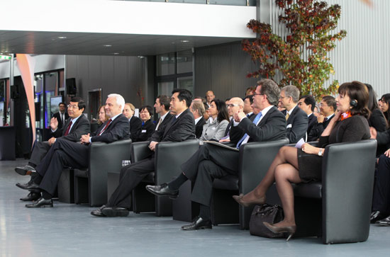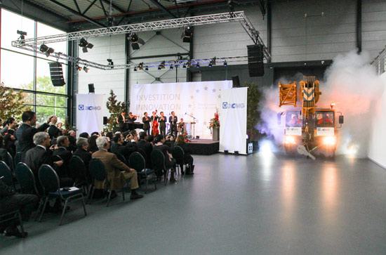 On October 11, Official Application of XCMG Europe GmbH New Address & Opening Ceremony of XCMG European Centre and XCMG European Purchase Center was grandly held in Krefeld City, Nordrhein-Westfalen (NRW) State of Germany, and attended by nearly 300 persons, including Head of NRW State Economic Department Garrelt Duin, Chairman of NRW State Investment Support Agency Petra Wassner, Mayor of Krefeld City Gregor Kathstede, Consul General of Chinese Consulate General in Frankfurt Wen Zhenshun, Chief Representative of Jiangsu Provincial Department of Commerce’s Europe-based Representative Office Ding Dagang, leaders of XCMG, as well as representatives from German Government, industrial & commercial circle, XCMG’s European cooperative partners, German media, and XCMG’s subsidies and branches in Europe etc. On behalf of their respective sides, Deputy General Manager of XCMG Li Suoyun and Mayor of Krefeld City Gregor Kathstede signed an agreement of cooperation between XCMG and Krefeld City.