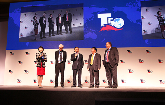 Chairman Wang Min illustrates his viewpoints at the 2013 Top 50 Summit of World Construction Machinery Industry