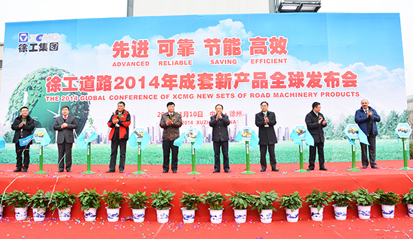 The 2014 global press conference of a complete set of products for Business Division of XCMG Road Machinery themed as "advanced, reliable, energy-saving and efficient” was grandly held in Xuzhou, Jiangsu reputed as “capital of Chinese construction machinery” on January 10, 2014. Domestic and foreign customer representatives, national distributors, staff representative and media (over 300 people in total) including Wang Min-President of XCMG Group and Secretary of the Party Committee, Su Zimeng-Secretary General of the China Construction Machinery Association, Wang Qingzhu-Assistant President of XCMG Machinery and General Manager of XCMG Road, Jiao Shengjie-Professor of School of Engineering, Chang' an University, Doctorial Supervisor and Director of National Key Laboratory of road maintenance equipment, Luo Zehua-Deputy Secretary of Pavement and Compaction Machinery Branch of the China Construction Machinery Association, relevant leaders, Gong Wanbin, Vice President of Jiangsu Provincial Transportation Engineering Group Co., Ltd, Mr. Oleksandr Danylchenko from Ukraine DEPS Information Company, Mr. Lvakin Alexandr from Russia Commercial Motor Sales Company, Mr. Suchkov Pavel from Russia Special Machinery Co., Ltd., etc. gathered in Pengcheng and assisted the great occasion together. All leaders and guests on the site jointly witnessed the global glorious release of a complete set of new products of XCMG Road Machinery in 2014 and jointly felt the unique charm of a new generation of "advanced, reliable, energy-saving and efficient” high-tech products of XCMG.