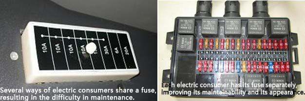 Centralized control: An integrated fuse box featuring a parallel structure is used, so the whole machine can have its electric equipment controlled in a centralized manner, which thus can achieve convenient and efficient trouble shooting.