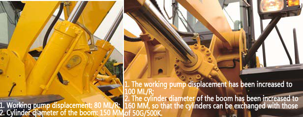 Cylinder pump: Upgrade and unify the working pumps, boom cylinders and other hydraulic system components to improve its lifting capability.