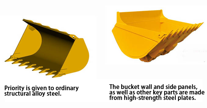 Bucket: High-strength steel plates made from new materials are used to replace the ordinary structural alloy steel, so the abrasion and impact resistance has been increased by more than 30%.