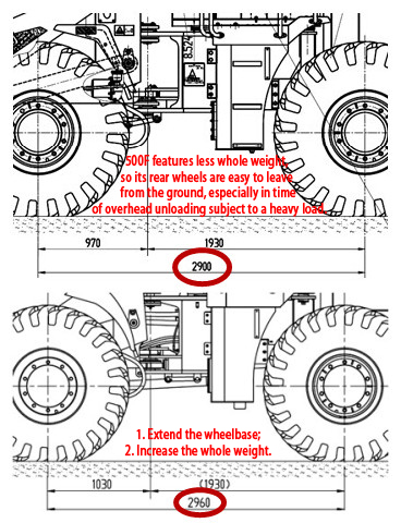 Wheelbase: Longer wheelbase, larger balance weight and better operation stability.