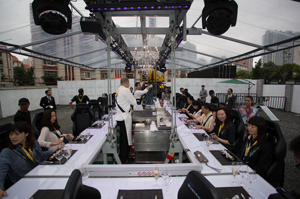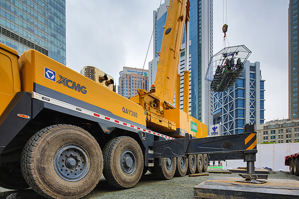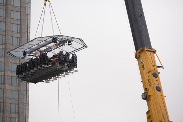 On June 27, 2014, an event creatively themed as “Dinner in the Sky” was formally launched at Four Seasons Hotel in Lujiazui (at Pudong New Area, Shanghai) as its debut in East Asia, following Belgium, France, Russia, US and Middle East. On the site stood a clean 300T all-terrain crane of XCMG.