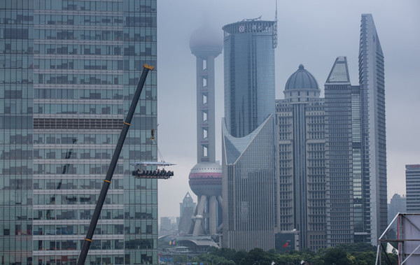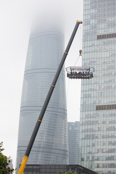 An interviewed lady said excitedly: the lifting is more stable than elevator, and without the buildings in the distance as reference, I would hardly felt that I was being lifted. Even though the basic movements were restricted by the safety belt, except that my hands, feet and head can freely move, the seat could rotate by 180º, so I can appreciate the panoramic scenery of Shanghai: the two landmark buildings - Shanghai Tower and Oriental Pearl TV Tower stands by my side, and endless traffic on Century Avenue flows under my feet. Buildings at Shanghai World Financial Center are swathed in mist, and Shanghai Tower likes a mirage, with its upper part faintly discernible. It is fantabulous. For the first time I perceived another kind of beauty of this city.