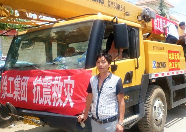 As a matter of fact, the disaster-stricken area was right the hometown of Kong Xianghuan, a user of XCMG cranes. Upon hearing the news of the conditions in the hard-hit area, Kong could not wait any more. Driving his XCMG QY30K crane truck, he hurried to the disaster-stricken area. However, he was stopped at the road leading to the disaster-stricken area for this was an individual action. At this moment, Kong attempted to contact XCMG office to join the team.