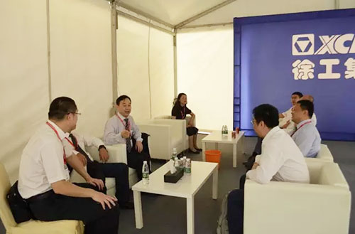 مقابل نائب صاحب مجموعة XCMG و رئيس مجلس الإدارة لشركة XCMG للإتسيراد والتصدير السيد سون جيانغ تشونغ الوسائل الإعلامية