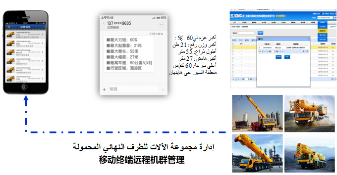 كانت XCMG حققت تركيب الطرف النهائي GPS لجميع المنتجات في عام 2012. حاليا، استنادا إلى منصة انترنت الأشياء للمؤسسة، يمكن مراقبة معلمات الأعمال لكل مركبة عن بعد. يمكن للعميل استغلال نظام الإدارة الذكية للجوال المطور من قبل XCMG في مراقبة موقع المركبة وبيانات تنفيذ الأعمال وغيرها في الزمان الحقيقي ويسير استغلال العميل الطرف النهائي المحمول في تحقيق إدارة المجموعة عن بعد.