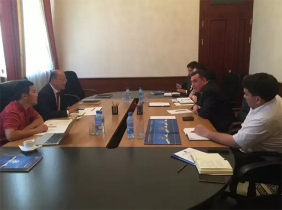المدير ليو ورئيس مجلس إدارة الطريق السريع الوطنى جنة أوزبكستان يصور مع البعض