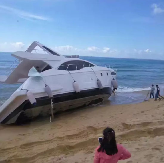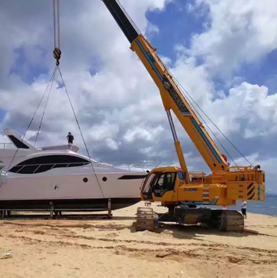على شاطئ في مقاطعة هاينان، جنح قارب النزهة الذي تبلغ قيمته نحو عشر مليون يوان على الشاطئ بسبب التشغيل الخاطئ. وبسبب رطوبة ونعومة الشاطئ، لا يمكن للرافعة العادية أن تدخل موقع الإنقاذ، ويصعب عليها أن يضع الركيزة حتى ولو دخل الموقع، ومن السهل أن تحدث حادثة تقلب إلى الجانب بدون الانتباه.