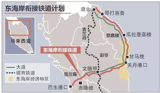 تعتبر السكة الحديدية الواقعة في الساحل الشرقي لماليزيا مشروعا نموذجيا للبناء المشترك لـ"الحزام والطريق" للصين وماليزيا، كما هي المشروع الرائد لـ"الحزام والطريق"، ويربط هذا المشروع باعتباره جزء من السكة الحديدية الآسيوية بالسكك الحديدية التايلادية، ويشكل ممر النقل البري من منطقة جنوب غربي الصين إلى ماليزيا، وسوف يحدث تأثيرات نموذجية جيدة في جنوب شرقي آسيا والدول الواقعة على طول "الحزام والطريق". وإن هذا المشروع أكبر مشروع في عملية البناء للمؤسسة الصينية في خارج الصين، كما هو أكبر مشروع منفرد بحت إيطار مبادرة "الحزام والطريق".