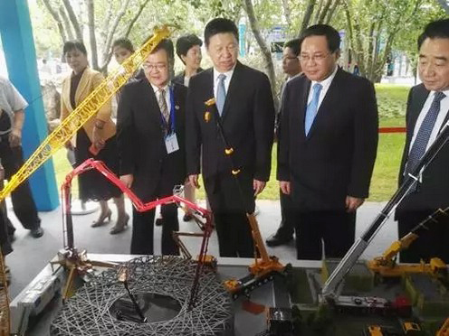 زار الوزير تان سونغ معرض XCMG بمرافقة الأمين السيد قيانغ لي، وقدم الأمين السيد قيانغ لي للوزير السيد سونغ أن تتمتع XCMG بقدرة الابتكار القوية، والدرجة العالمية العالية، وهي ليست بسيطة! سئل الأمين السيد قيانغ لي الأحوال المنتجات بالتفصيل مثل سيارة الإطفاء ب100 متر ل XCMG والرافعة المجنزرة التي يكون لها أكبر وزن بقدر 4000 طن في العالم، ويقدر أن XCMG هي شركة " ليست بسيطة."