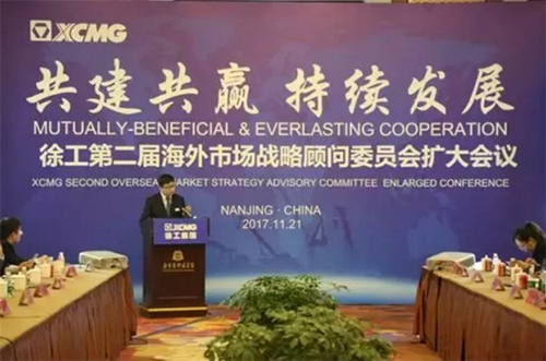 في يوم 22-21 نوفمبر، أقامت الدور الثانية من مؤتمر اللجنة الاستشارية الاستراتيجية للسوق الخارجية XCMG بموضوع "الإنشاء والنجاح المشترك، التنمية المستمرة" في نانجينغ بمقاطعة جيانغسو وحضر حوالي مائة شخص في المؤتمر من أعضاء اللجنة الاستشارية الاستراتيجية للسوق الخارجية XCMG وبعض الموزعين لمشاركة الثمار الرئيسية ونمط التنمية للأعمال الخارجية ل XCMG وتبادل الآراء في الاستراتيجية الدولية والتشغيل المحلي ل XCMG وكذلك يبحث ويتبادل المنتجات والأعمال الجديدة لاستراتيجية تنمية التجارة الإلكترونية العابرة للحدود ووضع التعاون والسيارة وغيرها من المنتجات الجديدة في المؤتمر.
