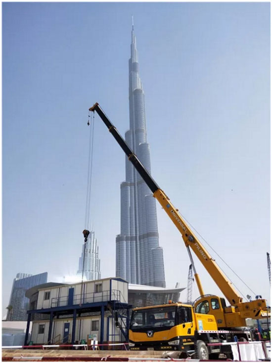 في هذه المدينة أكثر سحرية في العالم، تطبق رافعة XCMG أسلوب أكثر خاصة في إضافة العناصر والألوان الصينية لعيد الربيع في الدول الأجنبية. وخلال فترة عيد الربيع، قرب برج خليفة الذي يعد أعلى مبنى في العالم تشغل عددا من رافعات XCMG الجديدة في توسعة محيط المبنى ويعرض ذهب الرافعة تحت عظمة برج دبي.