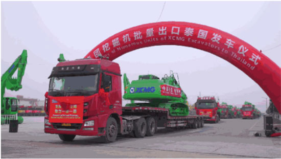 إن الابتكار التقني والتدويل استراتيجية محورية لمجموعة XCMG دائما. خلال عملية النشاطات في السوق الخارجية، تتمسك شركة XCMG للحفارة بفرصة استراتيجية "الحزام والطريق" وتروج مجموعة  المنتجات المحجوزة بأمريكا الشمالية وأمريكا الجنوبية وأوروبا والشرق الأوسط وآسيا الوسطى وجنوب شرقي آسيا وتناسب اتجاه تطور سوق المنتجات العالمية بمتطلبات الأنواع والتجهيزات المتعددة والكمية الصغيرة والخدمة المحجوزة والتكلفة المنخفضة لسد حاجة القيمة العالية للعملاء. وإن المنتجات المصدرة إلى تايلاند تتوافق مع حاجة العملاء وتحقق خصوصية المنتجات ولا يكون المظهر حديثا فقط، بل يرتقي أداء المنتجات بشكل مزيد وتتحرك المعدات بسرعة بأكثر حماية البيئة وتوفير الطاقة والاستمكان المضبوط والتغطية الواسعة ويحظى بتقدير العملاء.