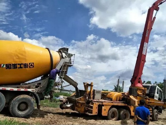شاحنة المضخة والخلاط XCMG على خط تنفيذ عمل السكك الحديدية بين الصين ولاوس
