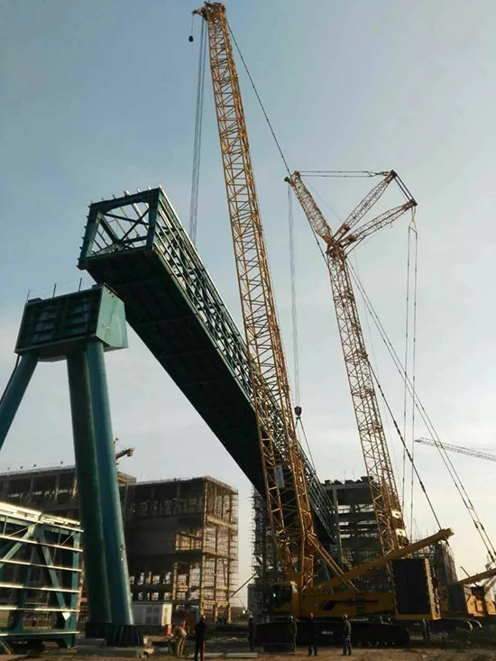 تعمل الرافعة XGC300-طن مع الرافعة QUY450 طن على رفع ممر التوصيل للفرن العالي