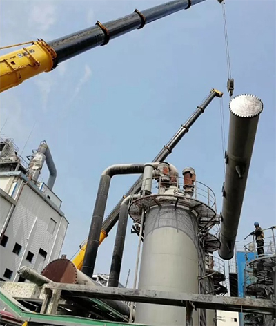 في مشروعات بناء وفحص وصيانة وإصلاح الأجهزة الكيماوية، يتطلب رفع بعض الأجهزة داخل أو خارج الهياكل، وبسبب قيود الهيكل والأجهزة حوله والأنابيب، تزداد صعوبة الرفع. في المشروع الكيماوي في حي جينشان بمدينة شانغهاي، إن حجم طلب إصلاح وصيانة المشروع كبير، والأجهزة ثقيلة، وارتفاعها عال، تتحمل رافعة مجموعة XCMG بطراز QAY650 المسؤولية عن فحص وصيانة الأجهزة في المشروع، ونالت عروضها ثناء من العاملين في موقع المشروع.