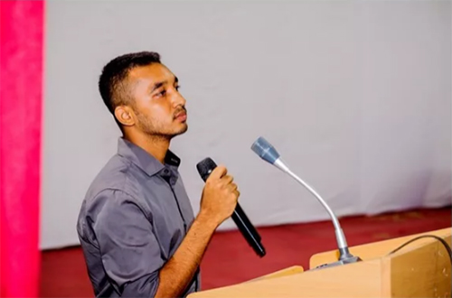 السيد وانغ شواي مدير الفرغ البنغلاديشي لمجموعة XCMG وزع المنحة الدراسية العالمية لمجموعة XCMG على الطلاب الجامعيين المحليين