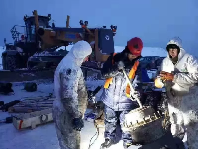 Como un líder del equipos de servicios de niveladores del XCMG en este proyecto, Sr. Miao GUO, un niño que creció en Jiangsu desde que era un niño, nunca olvidará la escena de servir aquí. "40 grados bajo cero, fui tan estúpido cuando me bajé del autobús. Los técnicos del equipo del proyecto me llevaron a la mina para observar el sitio de construcción. Aquí hay una capa gruesa de permafrost. El lugar más grueso es 1377.6 metros, que es muchas veces más grueso que la capa de suelo congelado más gruesa de la meseta Qinghai-Tíbet.
