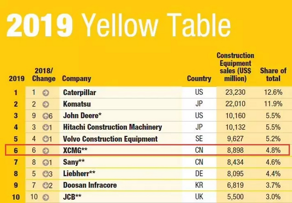 Vale la pena mencionar que: UK KHL 2019 ha lanzado una lista de los 50 fuertes principales fabricantes mundiales de maquinaria de construcción. Bajo el fuerte apoyo de un sólido rendimiento, el XCMG ha continuado liderando empresas chinas con un ingreso anual principal de 8.88 mil millones de dólares, clasificándose la sexta en la industria global, quién es la única compañía china que ha mantenido consistentemente sus diez principales en la industria global. Ha sido clasificada en el primer lugar en la maquinaria de construcción de China durante 30 años consecutivos. Con el desempeño de "la parte fuerte es fuerte permanente", siempre ha mantenido una alta calidad estable y un ritmo de desarrollo.