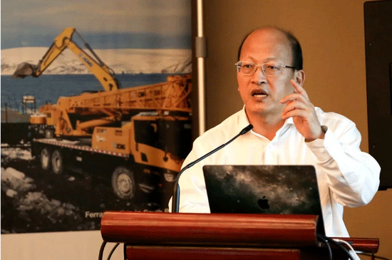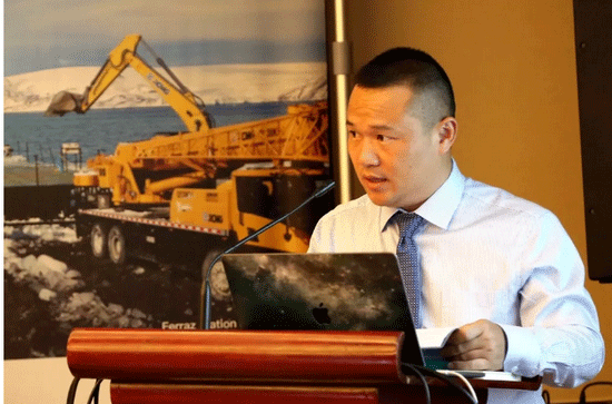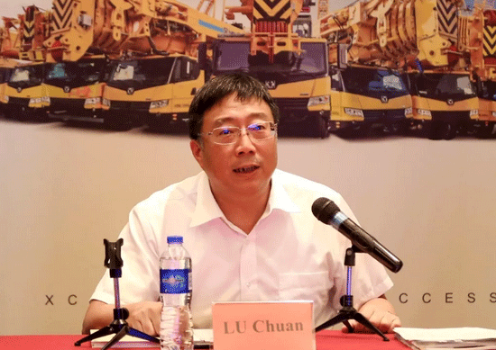 El presidente de Machinery del XCMG y presidente del comité de estrategia de mercado del XCMG en el extranjero, Sr. Chuan LU, pronunció en la reunión.