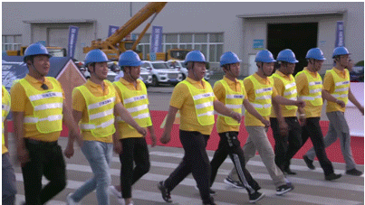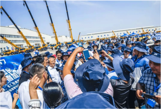 Apesar del tiempo de un verano cálido, el ambiente de la conferencia al aire libre ha sido muy animado, cientos de invitados han sido atraídos por los equipos de elevación no dejaron de aplaudir. Con la música apasionada, las grúas de color amarillo claro han tenido una imagen más lucinante contra el cielo azul, ostentando “lo romántico” que tienen exclusivamente la maquinaria de construcción. Los operadores los han sacado lentamente de la fábrica manejándolos con agilidad, formando una forma de “W”, que significa al mismo tiempo “WORK HARD” y “WIN”, también ha sido una bendición enviada por XCMG a todos los luchadores esperando que logren éxitos.