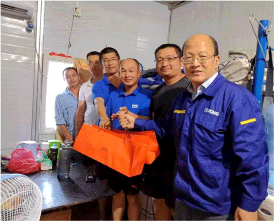 Para que los empleados en el extranjero sientan la calidez de la compañía, durante las vacaciones del Medio Otoño, la Alta Dirección de la empresa incluyendo el Vice Gerente General de XCMG Maquinaria y Gerente General de XCMG Importación y Exportación Liu Jiansen, el Secretario del Partido de XCMG Importación y Exportación Jiang Nan, el Vice Gerente General de la Compañía Liu Quan etc. entran en la línea del frente para dar condolencia para los empleados en el extranjero.
