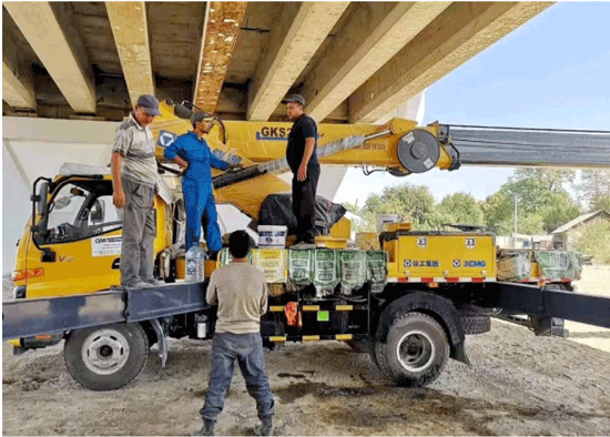 Lei Ke, gerente nacional de la zona de Asia Central de XCMG. Al mismo día del Medio Otoño, está realizando el ajuste de instalación de un equipo de XCMG junto con los trabajadores de servicios en la primera línea. Debido a que el plazo de trabajo del proyecto es muy intense, el cliente tiene requisito muy urgente, desde las 8 de la manaña de la hora local, Lei Ke empieza el trabajo junto con los compañeros y trabaja continuamente por unas siete y ocho horas.