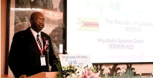 El ministro de la Embajada y Consejero de Zimbabwe en China, Sr. Mulu Buku Dolby dio palabras.