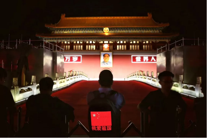 Los brazos de la grúa en el costado se levantaron nuevamente, enganchando firmemente la parte superior del nuevo retrato estacionado en la camioneta, suspendiendo el retrato y acercándose al centro de la Puerta de Tian´anmen. A lo largo del proceso, el retrato estaba estable. Una hora después, el retrato del recién pintado del Presidente Mao fue colgado en el centro de la Puerta de Tian´anmen, esperando la atención del mundo tranquilamente.