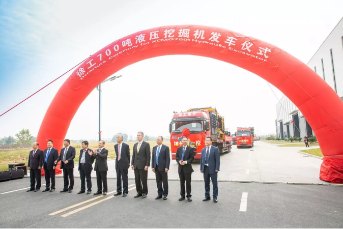 Qi Jun, presidente de la Asociación de la Industria de Maquinaria de Construcción de China, Wangmin, presidente y secretario del comité del partido de XCMG, Lu Chuan, representante de clientes de minas al aire libre a gran escala de Chian, presidente y subsecretario del comité del partido de XCMG Machinery, Wu Jianglong, vicepresidente de XCMG Machinery, Li Zong, subgerente general de Sociedad Limitada de XCMG y gerente general de XCMG Mining Machinery, Steve Chapman, vicepresidente del grupo Cummins, Liu Jiansen, vicepresidente de XCMG Machinery y gerente general de importación y exportación de XCMG, Liu Xiaoxing, vicepresidente de Cummins y gerente general del departamento de motores de China, Xing Yongdong, gerente general del departamento del sistema de motores Cummins en China, así como los socios y los medios de la industria, los encargados de XCMG, representantes de empleados de maquinaria minera de XCMG se reúnen para ser testigos del momento histrórico del lanzamiento de la excavadora hidráulica de mayor tonelaje de China, representando el nivel tecnológico más alto de los equipos de alta gama de China.