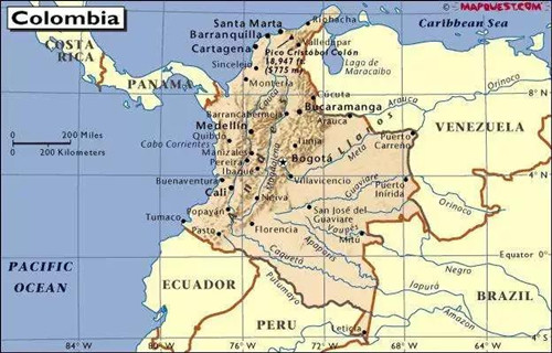 Mapa de la ubicación de Colombia