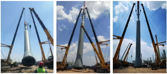 En el parquet eólico marino de Qidong Huaerrui (uno de los proyectos de “Tres Gargantas en el Mar” de Jiangsu), QAY650A extiende los brazos, junto con el “hermanito” QY75K para cumplir la instalación de energía eólica de precision alta y estabilidad alta.