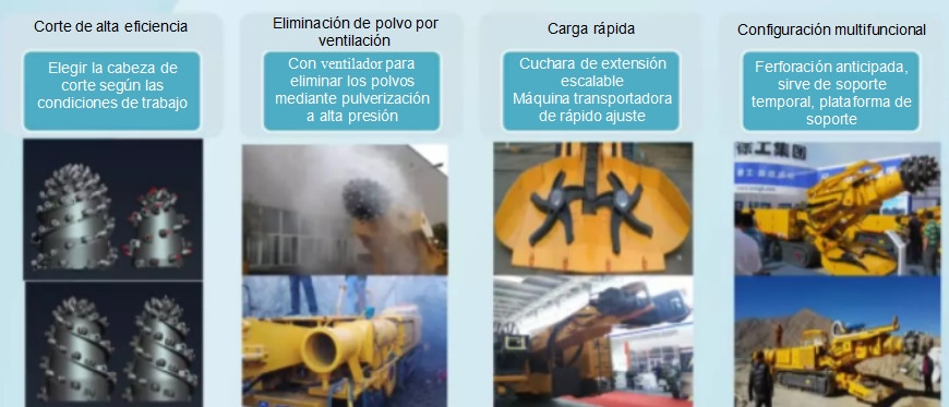 El uso de la tuneladora de viga voladiza tiene ventajas tales como la perturbación de roca pequeña, seguridad, protección ambiental, forma de sección de construcción libre, precisión de formación alta, demanda de personal poca, flexibilidad etc., está reemplazando poco a poco la tecnología tradicional de perforación y voladura, puede cumplir con los requisitos de construcción del túnel moderno.