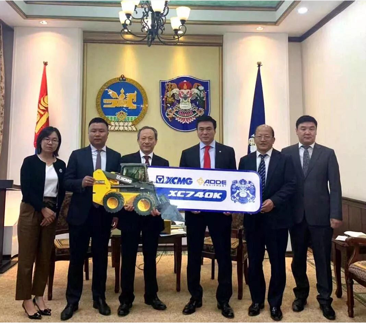 El alcalde Sri Amuersai Khan dijo que estaba muy agradecido con el presidente Sr. Min WANG y su delegación por visitar a la ciudad de Ulán Bator. Él dijo: "El XCMG es el mayor fabricante de maquinaria de construcción en China y el sexto en el mundo. En la cooperación a largo plazo entre Mongolia y el grupo mongol Aode, juegan un papel importante tales como promover el desarrollo de Ulán Bator e incluso Mongolia y resolver los problemas de empleo de la población local, etc. ¡La compañía Aode también es un contribuyente modelo de pago de impuestos en Ulán Bator que es muy excelente! "