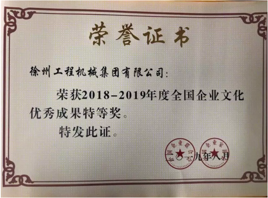 El Grupo XCMG ganó el “Premio Especial Nacional al Logro Sobresaliente de la Cultura Empresarial”, convirtiéndose en la única empresa que ha sido honrada con esta distinción en la industria de maquinaria de construcción del país.