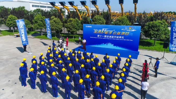 El 20 de agosto, se llevó a cabo la ceremonia de apertura del undécimo curso de capacitación del proyecto de bienestar público "Conductores Globales Buenos" del XCMG en el Departamento de Maquinaria de Excavación del XCMG. Los líderes de las tres unidades de capacitación confiadas como unidad de excavadora del XCMG, unidad de raspador del XCMG, Schwing del XCMG, el colegio de Técnicos del XCMG, y 77 estudiantes de todo el país asistieron a la ceremonia de apertura para transmitir conjuntamente el concepto de bienestar público de "El XCMG, hacer del mundo un lugar mejor"!