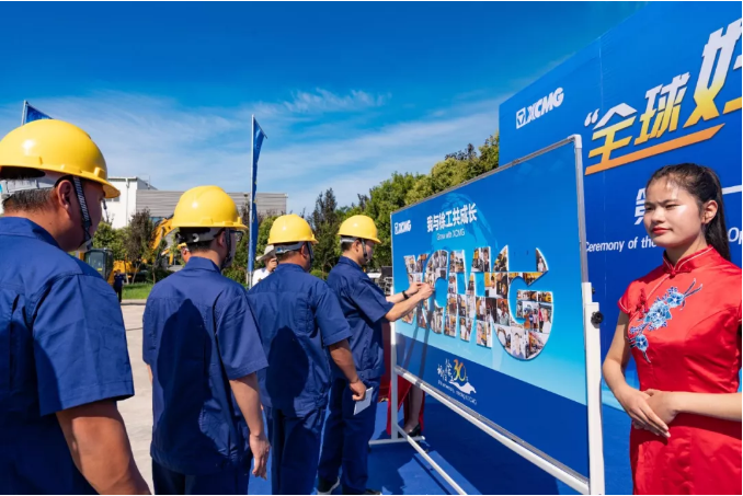 ¡En la ceremonia, los representantes de las clases de capacitación usaron sus propias fotos con productos del XCMG para formar el dipujo "el XCMG", presenciando el éxito de los 30 años de historia del XCMG para ayudar a los clientes a tener éxito y ayudar a los conductores a darse cuenta del valor de su vida!