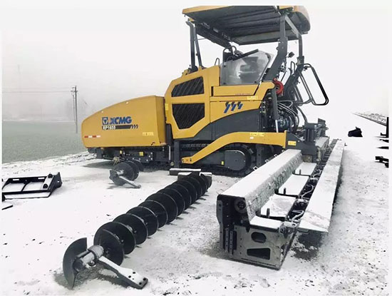 El personal de servicios del XCMG asambleó pavimentadoras RP1655 del XCMG bajo la nieve