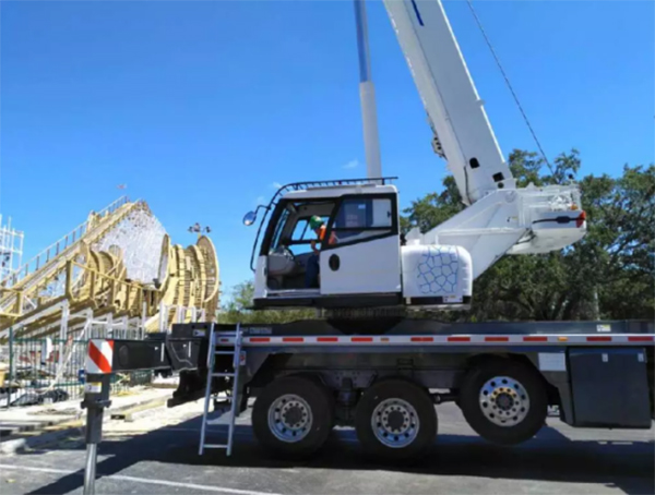 a las 8:00am de 18 de mayo (horario americano) , la grúa móvil XCT40U terminó con éxistos el primer montaje en Fun Sport America en Orlando, comenzando su viaje en América del Norte.