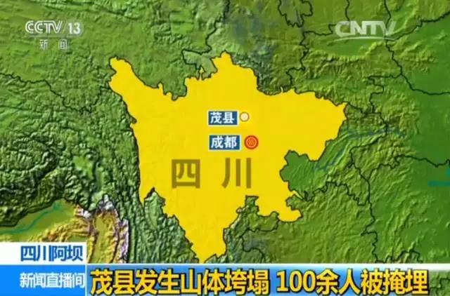 A las horas 06:00, 24 de junio, un colapso repentino de alta montaña en la aldea Xinmo del pueblo Diexi del condado Mao de Sichuan, actualmente se ha bloqueado el río por 2 km, más de 40 familias de más de 100 personas han sido enterrados.