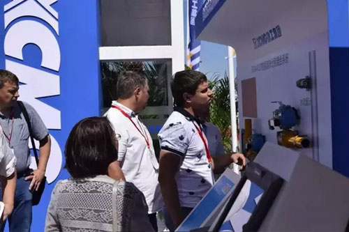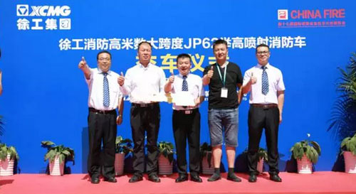 “V5, nuevo concepto de creatividad, ¡le da un muy fuerte impacto visual!” Frente a los nuevos productos y la nueva imagen de apariencia de equipos contra incendios de XCMG, los visitantes que acababan de entrar en el área de exposición de XCMG fueron atraídos por las “hermosas estrellas” por delante. El nuevo modelado de diseño y el potente rendimiento del “guerrero todopoderoso” DG54M1 atrajeron a una grande cantidad de participantes a detenerse y mirar con cuidado. En la gran ceremonia de entrega en sitio, conocido como “guerrero petroquímico”, el primer modelo de camión de bomberos con torre de agua con grande flujo y grande tramo específico para la petroquímica JP62S1 de XCMG se entregó a los clientes para su uso por primera vez, y se convirtió aún más en la “estrella” brillante en el área de exposición con el avanzado y perfecto diseño de combinación entre la pierna de apoyo y el soporte de pluma, atrayendo la mirada y la exclamación de los participantes. “El camión de bomberos de serie V5 de XCMG no sólo es una conversión de productos de norma nacional V, sino también es un salto en el rendimiento de productos, cuya tecnología de navegación de visualización inteligente, transmisión remota de información del vehículo y diagnóstico remoto de fallos han sido aplicados con madurez.” El director técnico de lucha contra incendios de XCMG, Xu Xiaodong, explicó a los clientes.